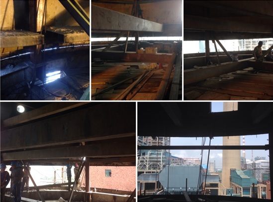 2015年5月1日11時16分,在業主、監理、國能中電太倉項目部、施工單位以及相鄰國華太倉電廠業主的共同見證下,6#吸收塔增高施工當天成功頂升圍板,這預示著協鑫太倉超低排放項目的建設進度更進一步。