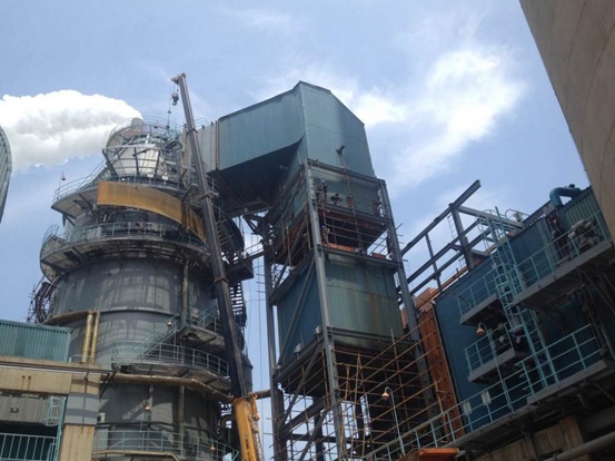 協鑫太倉超低排放項目吸收塔增高成功頂升