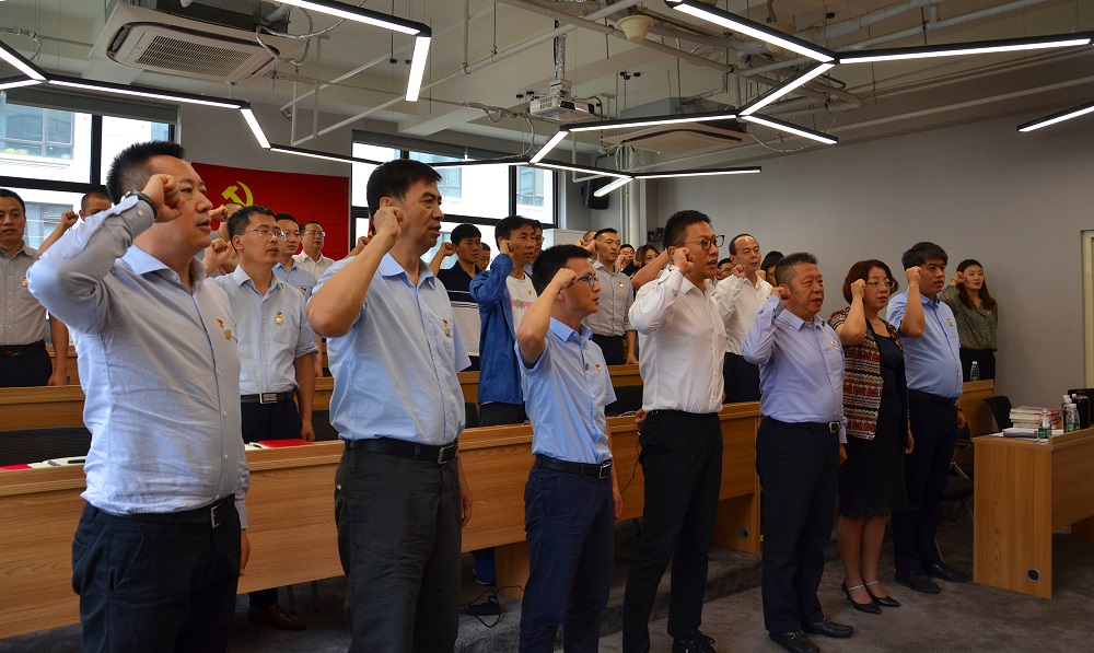 在宣誓環(huán)節(jié),全體黨員高舉右拳面向黨旗,表情肅穆,眼神堅(jiān)毅,慷慨而深情地誦讀入黨誓詞,字字鏗鏘,句句堅(jiān)定。